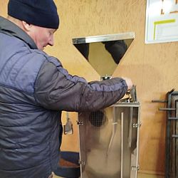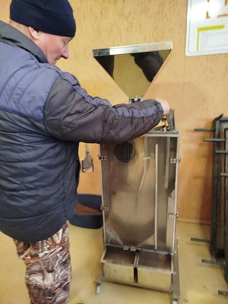 За повний цикл в середньому засипається – 256 кг шишок сосни. Вихід обезкриленого насіння 2,6-3,0 кг, що в процентному відношенні від маси загружених шишок становить – 1-1,2%.
